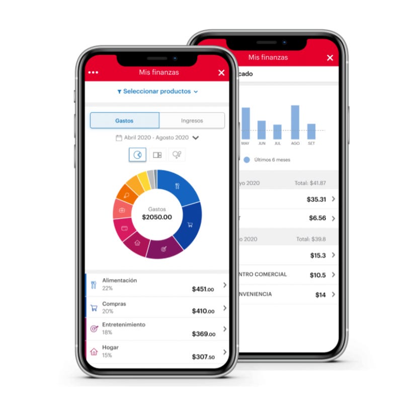 Mis finanzas registra automáticamente todos los ingresos y gastos que se hagan con medios de pago del grupo BAC Credomatic. La herramienta consolida y clasifica los movimientos por categorías base, y nos permite consultar, en tiempo real y para la ventana de tiempo que escojamos, los montos y porcentajes asociados a cada categoría.